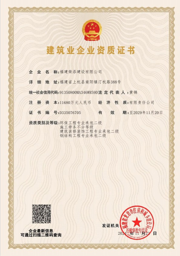 福建榮添建設有限公司成立于2016年,注冊資本:壹億壹仟陸佰萬元,公 司總部位于著名“建筑之鄉福建上杭縣。公司業務遍及福建各地、廣東 東莞、云浮、深圳、以及湖南、湖北、江西等地十余個省市。